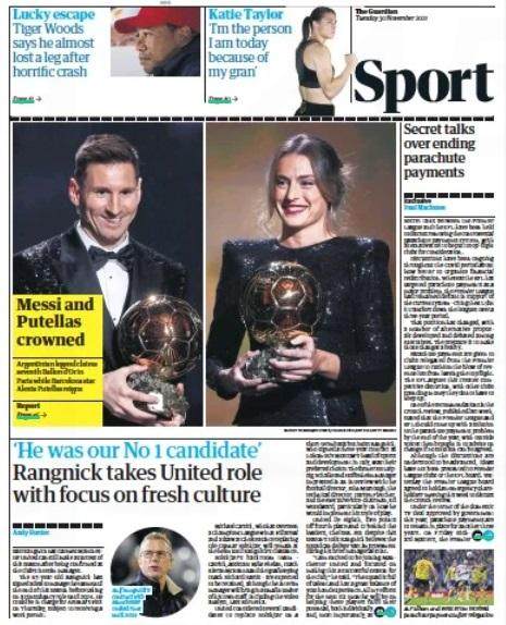 《卫报》的语气同样是格外平淡的,获奖者都和英国足球无关,梅西和普特利亚斯获奖了,仅此而已。